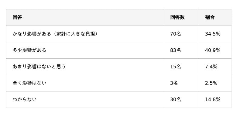 補助が終了した場合、電気代への影響はどの程度あると思うか
