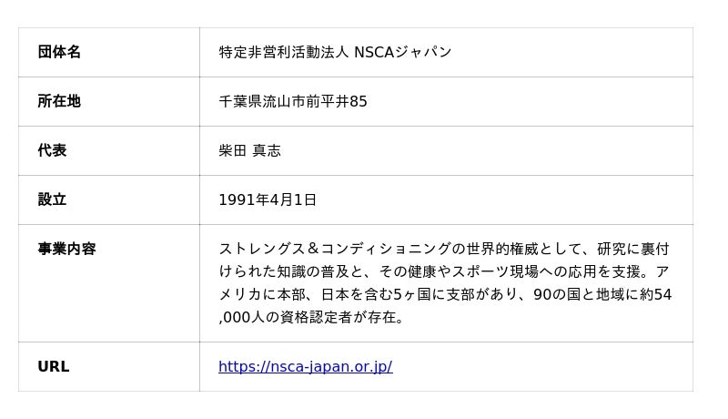 プレスリリース配信元:特定非営利活動法人NSCAジャパン