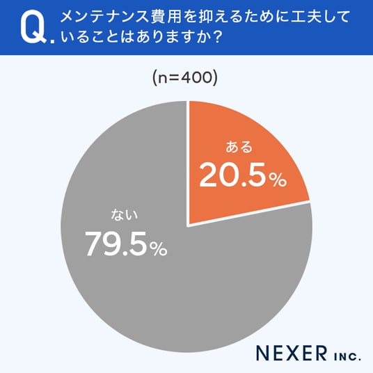 ■79.5%が、メンテナンス費用を抑えるための工夫を「していない」と回答