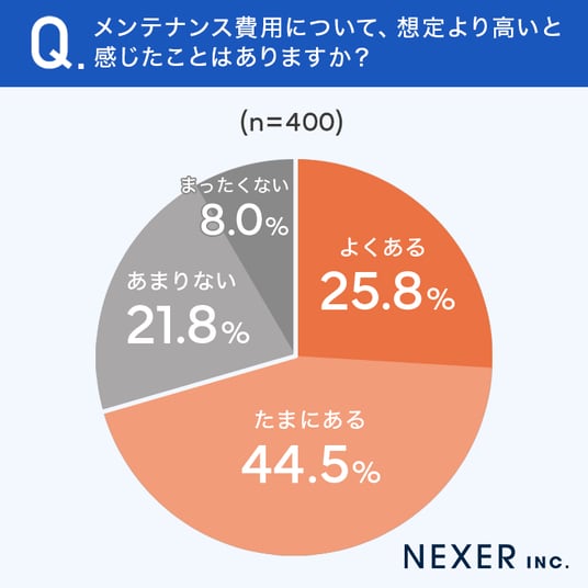 続いて、メンテナンス費用について想定より高いと感じたことがあるかを聞いてみました。