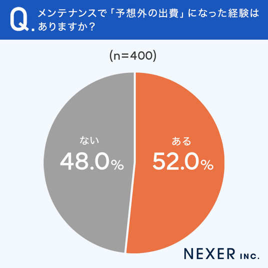 ■52.0%が、メンテナンスで「予想外の出費」になった経験が「ある」と回答