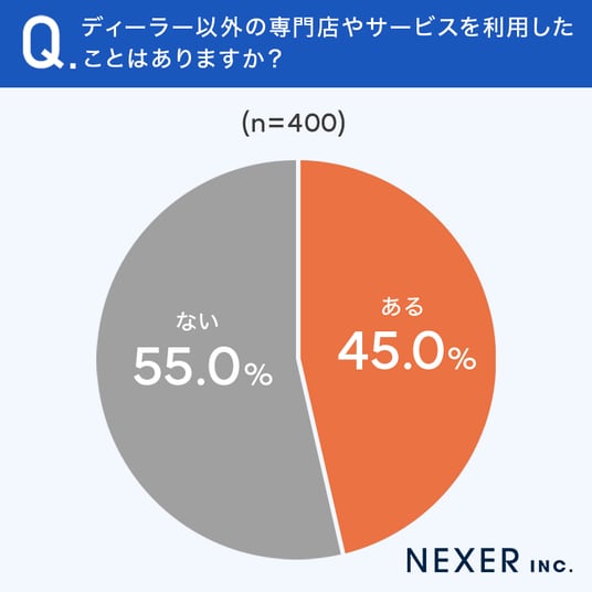 ■45.0%が、ディーラー以外の専門店やサービスを「利用したことがある」と回答
