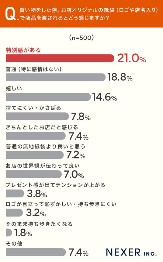 ■21.0%が「特別感がある」と回答、お店オリジナル紙袋への好印象が多数