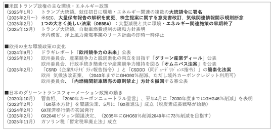 - しかしその後、安全保障面からの脱炭素政策の見直しや、反ESGの動きにより、サステナブル投資には逆風が吹いています