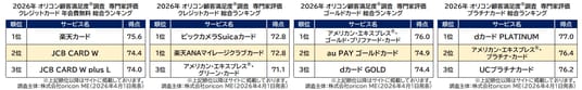『クレジットカード(専門家評価)』各総合ランキングの結果(2026年 オリコン顧客満足度(R)調査)