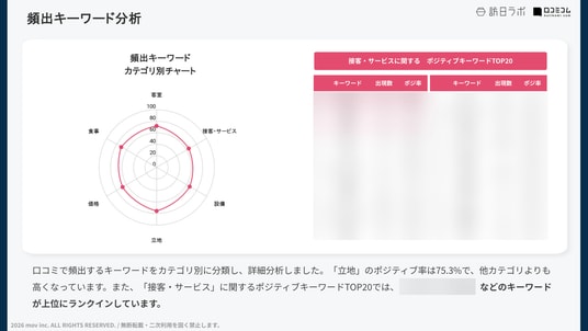 また、「接客・サービス」に関するポジティブキーワードをランキング化したところ、あるキーワードのポジティブ率が高く、お客様の評価ポイントであることがうかがえました。