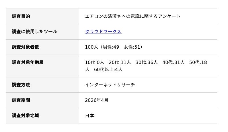 エアコンの清潔さへの意識に関するアンケート調査の概要