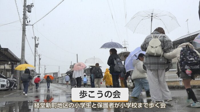 テクノロジーによる見守りが広がる一方、富山市の経堂新町地区では、地域全体で子どもたちを守る取り組みが行われている。小学生と保護者、そして地域の人たちが一緒になって通学路を歩く「歩こうの会」だ。