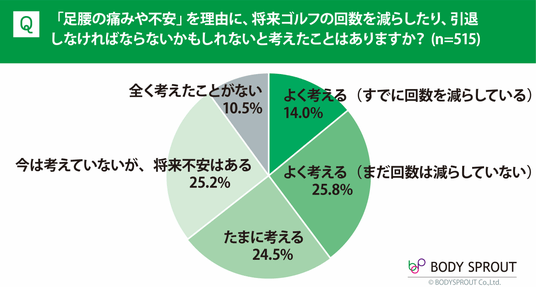 株式会社ボディスプラウト(本社:神奈川県川崎市、代表:小林 篤史)は、アマチュアゴルファー515名を対象に「ゴルフ時の身体の不安・パフォーマンスに関する実態調査」を実施しました。