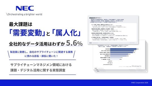 NECは、サプライチェーンマネジメント領域における課題とデジタル活用の実態を明らかにすることを目的として、従業員数300名以上の製造業に勤務し、サプライチェーン関連業務の部長相当・課長相当の方216名を対象に調査を実施しました。
