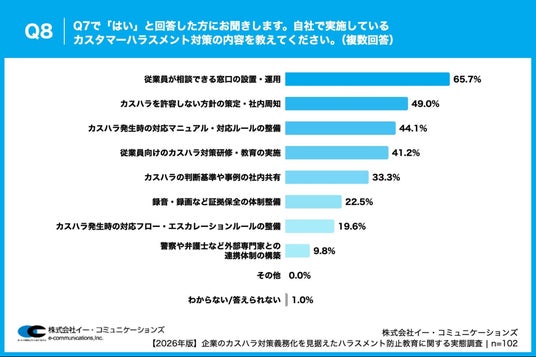 Q8. Q7で「はい」と回答した方にお聞きします。自社で実施しているカスタマーハラスメント対策の内容を教えてください。(複数回答)