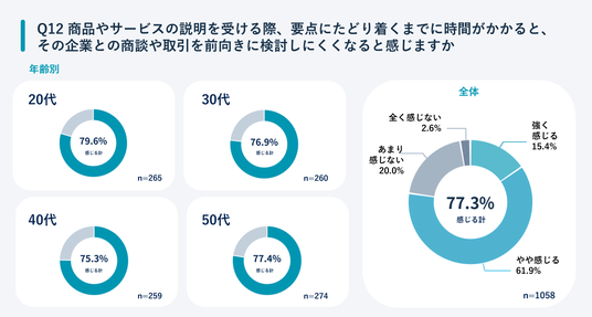 「要点にたどり着くまでに時間がかかると、そのサービスや商品を前向きに検討しにくくなる」と答えた人は77.3%でした。