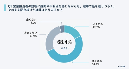 営業説明や商談の中で、話を聞きながら「つまりこういうことだろう」と自分で意味を推測・理解し直さなければならない経験がある人は77.9%にのぼりました。