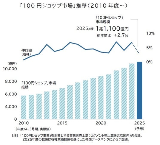 株式会社帝国データバンクは、全国の「100円ショップ」市場について調査・分析を行った。