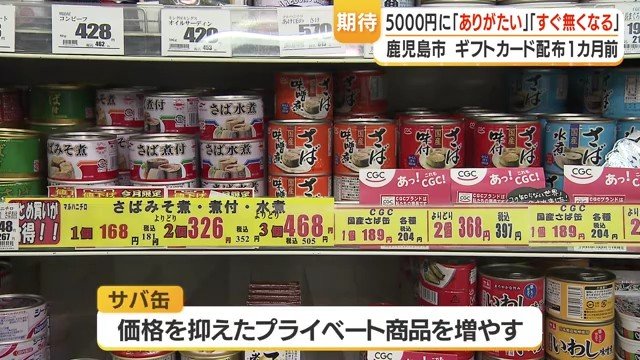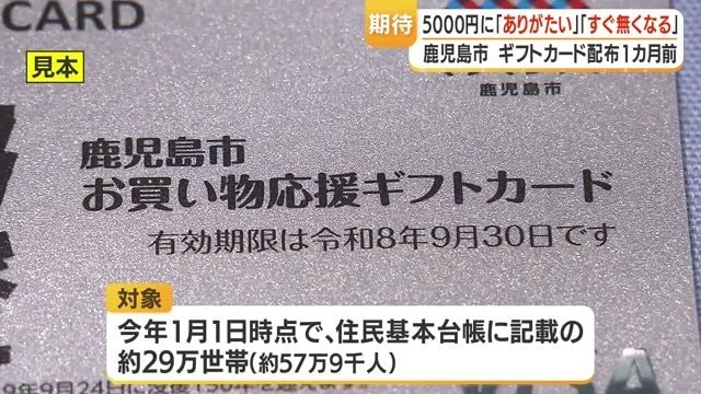 物価高騰が続く中、鹿児島市が全世帯を対象に1人あたり5000円分のプリペイド型ギフトカードを配布する。配布開始まで1カ月を切った市内の街頭では、「たった5000円だったって気がした」と苦笑いを浮かべる声がある一方、「もらわないよりはもらった方がいい」と受け止める声も。スーパーの店長は「特売を仕掛けたい」と早くも商機を見据えている。