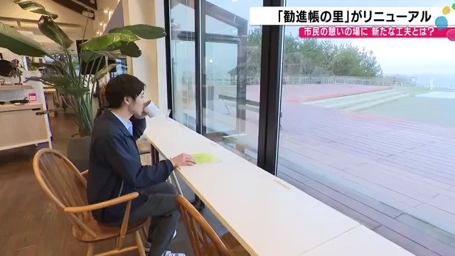 寺西アナウンサーがそう感嘆するのも無理はない。日本海を望む開放的な空間にソファや植物が配置され、まるで上質なカフェにいるような感覚を覚える。コワーキングスペースとしての機能も備えているため、仕事や勉強に訪れる人にとっても使いやすい環境が整っている。