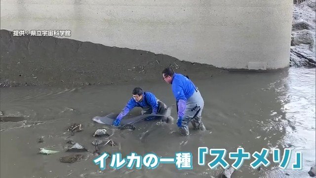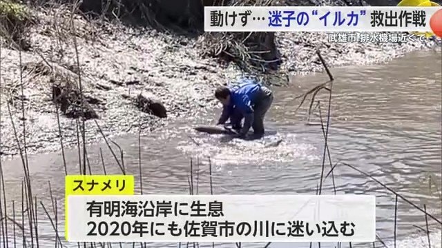 有明海沿岸に生息するイルカの一種で絶滅危惧種の「スナメリ」が河口から約30km上流で泥に埋まり動けなくなっているのを発見。専門家が安全に泳げる場所まで運んで放流。イルカの救出作戦は無事成功した。