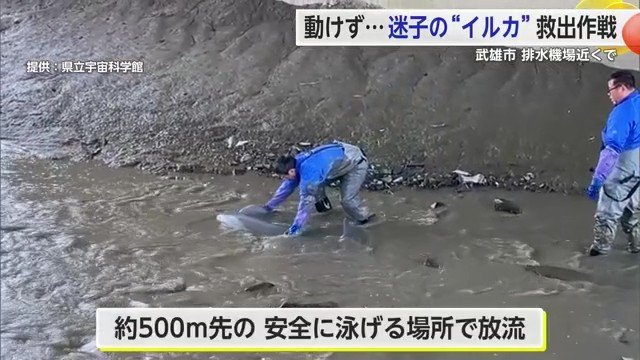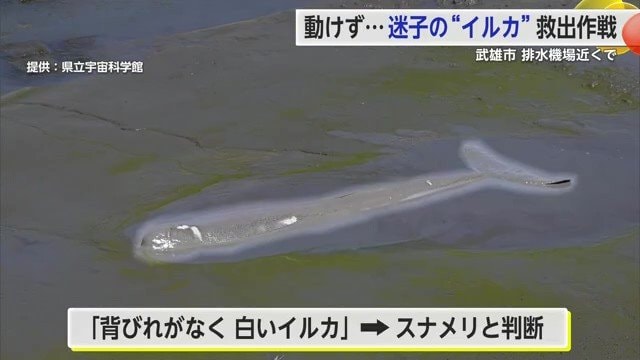 佐賀県立宇宙科学館によると、迷子になったスナメリが川に入ってきた情報は過去にも寄せられていて、2020年には佐賀市の本庄江川で救出され有明海に運ばれたことがあったという。