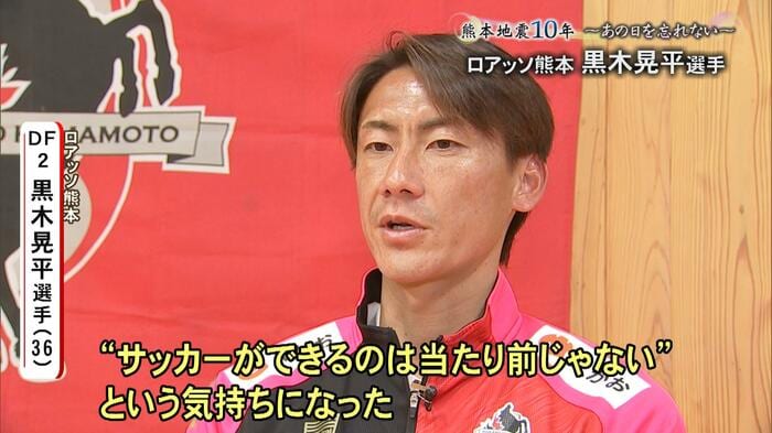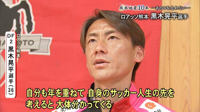 ロアッソ熊本は10年前、熊本地震で一時、リーグ戦を含めた活動を休止するなど困難な状況にありました。当時を知るベテラン、大津町出身の黒木晃平選手はサッカーのできる喜びを感じながら、この10年を過ごしてきました。