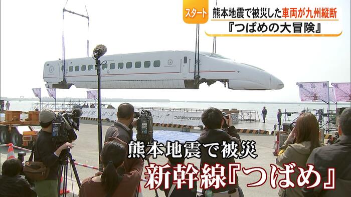 10年前の熊本地震で傷ついた『つばめ』が九州を縦断します。これは九州新幹線・全線開業15周年を記念して、走行不能となった九州新幹線『つばめ』の車両が、線路ではなく、陸路や海路を使って九州を縦断するイベント『つばめの大冒険』が3月29日から始まり、熊本県内でもイベントが行われました。