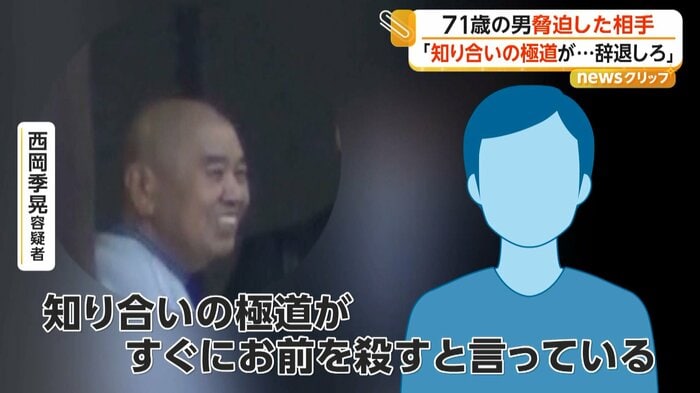 西岡容疑者は、京都・南丹市の市長選挙に当選した西村好高さんの自宅を訪ねると、「知り合いの極道がすぐにお前を殺すと言っている。市長を辞退しろ」と市長に就任するのをやめるよう求め、応じなければ危害を加えるなどと脅迫した疑いがもたれている。