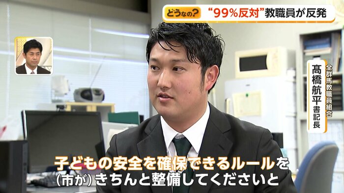 市の教育委員会によりますと、朝7時に門を開けるというのは公務員、いわゆる学校の施設管理、設備管理などをする公務員が開ける、つまりは子どもたちを見守る大人がいないという時間が生まれてしまうわけです。これを問題視したのが、現場で働く先生方です。市内の教育現場で働く先生や公務員など約3200人を対象にしたアンケートでは、1240人余りから回答がありましたが、そのうち実に99%が反対という結果になりました。現場でどんな声が上がっているのか、実際に教職員組合を取材しました。