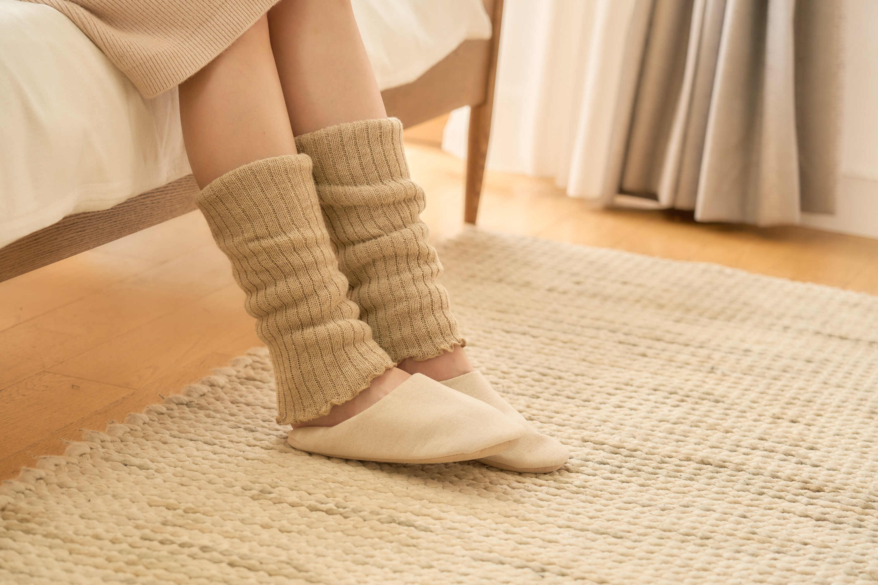 悩む中で、かつてものづくりを共にしてきた先輩との会話をきっかけに発想を転換。「ゴムを使わないなら、生地を“重ねる”ことで暖かさを出せないか」と考え、通常のレッグウォーマーよりも長く編んだ生地を折り返し、4重構造にする設計へとたどり着きました。試作と改良を重ねることで、締めつけ感がなく、かつ暖かさを実感できる構造が形になり、商品化に至りました。