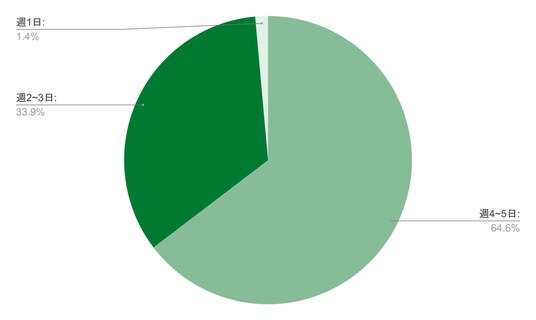 週4~5日が64.6%とフルタイム稼働が中心ですが、週2~3日も33.9%と約3分の1を占めています。