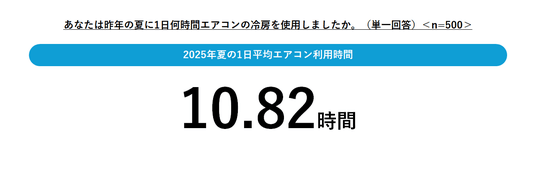 - 昨年の冷房使用開始時期は「6月」が最多。夏のエアコン使用時間は1日平均約11時間。