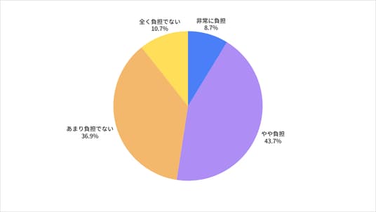 非常に負担に感じる(16.5%) / やや負担に感じる(35.9%) / あまり負担に感じない(38.8%) / 全く負担に感じない(8.7%)