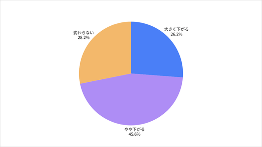 大きく下がる(24.0%) / やや下がる(46.1%) / 変わらない(28.6%) / むしろ応援したくなる(1.3%)