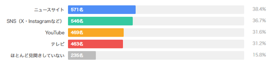 「ほとんど見聞きしていない」は15.8%(235名)にとどまり、多くの人が何らかの形で暗号資産の情報に触れていることがわかります。