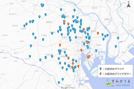 図1:23区内のブリリア、ブリリアタワー所在地(2026年3月 マンションナビ調べ)