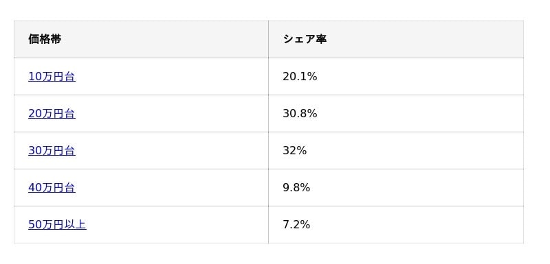 一方で「10万円台」も引き続き大きな関心を集めており、予算を重視した比較検討ニーズは依然として根強いままです。