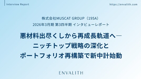 次世代型の株式リサーチ・プラットフォームを展開する株式会社エンヴァリス(本社:東京都渋谷区、代表取締役社長:河井 浩一、以下「当社」)は、株式会社MUSCAT GROUP(本社:東京都渋谷区、代表取締役:大久保 遼、証券コード:195A、以下「MUSCAT GROUP」)の2026年3月期 第3四半期 インタビューレポートを配信いたしました。