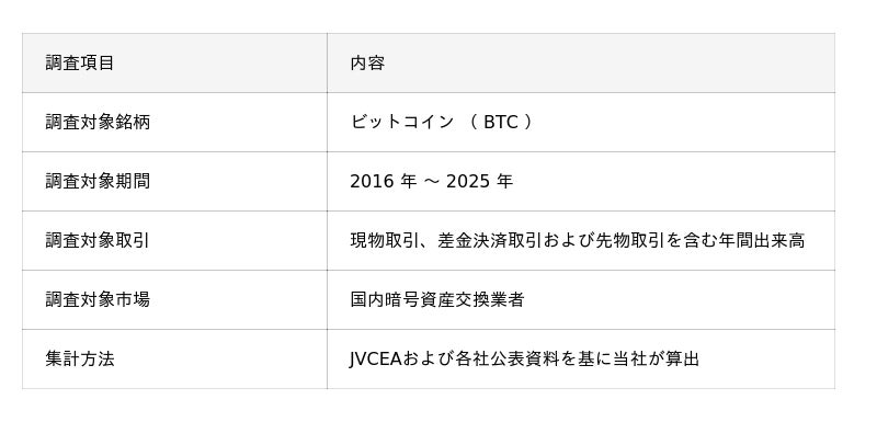* JVCEAおよび暗号資産交換業者各社が公表するデータを基に当社調べ (差金決済取引および先物取引を含む年間出来高、2016-2025年)