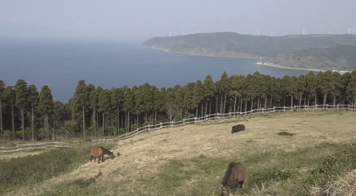 さわやかな春風の吹く宮崎県串間市の都井岬。約550ヘクタールの敷地には、国の天然記念物に指定されている野生馬、約100頭がのびのびと自由に暮らしている。在来馬の一種で「御崎馬(みさきうま)」と呼ばれて親しまれている。