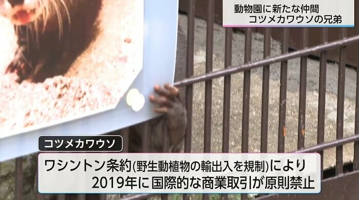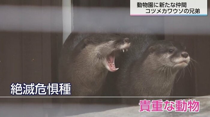 宮崎市フェニックス自然動物園に、コツメカワウソの兄弟が新たに仲間入りした。愛くるしい姿で来園者の注目を集めている兄弟は絶滅危惧種にも指定されている貴重な動物だ。