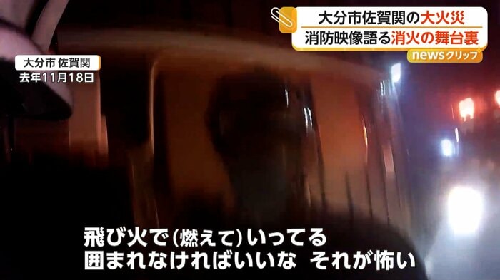 2025年11月18日、大分市佐賀関で起きた大規模火災の最前線で消火にあたった消防隊員が記録した映像。