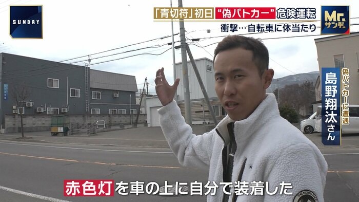 4月1日、“偽パトカー”と遭遇したという島野翔汰さん。