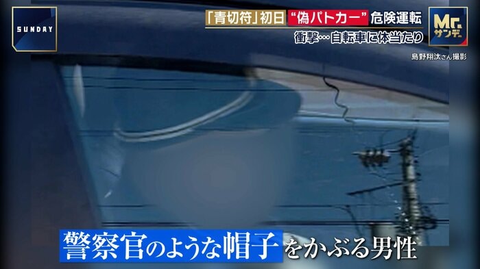 その後、車が停車した際、撮影した写真には、屋根にのせた赤色灯だけでなく運転席に座る警察官のような帽子をかぶった男性が写っていた。