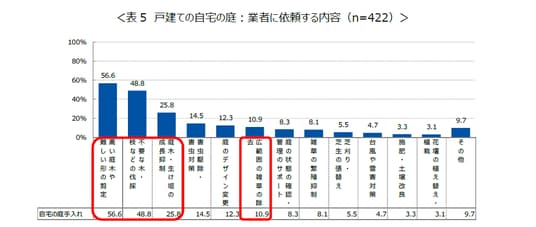 <表5 戸建ての自宅の庭:業者に依頼する内容(n=422)>