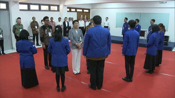 日本語を学ぶ学生との懇談(ダルマ・プルサダ大学)また、インドネシアの歴史や文化にも触れられた両陛下。皇后さまは伝統的な染め物「バティック」作りを体験されています。