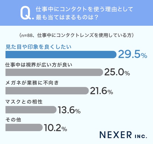 ■29.5%が、仕事中にコンタクトを使う理由として「見た目や印象を良くしたい」と回答