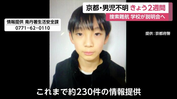 京都府南丹市で男子児童が行方不明となって、6日で2週間が経過した。