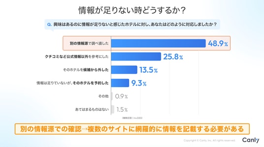 Google ビジネスプロフィール(TM)︎・HP・各SNSの一括管理サービス「カンリー店舗集客」の開発・提供を行う株式会社カンリー(所在地:東京都品川区、代表取締役:辰巳 衛,秋山 祐太朗)は、ホテル業界向けに「ホテルはしっかり比較したい!お客様の要望に応えられていますか?AI検索が普及する今、ホテルチェーンが自社予約」を増やすためにできること」を無料公開しましたので、ご案内いたします。