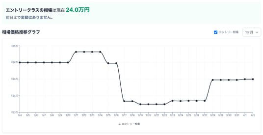 2月は「値上がりが止まっただけで、相場のベースラインは高いまま」という状況でしたが、3月はそこからさらに一歩進み、セールや販売調整による実質的な値下げが相場に反映された月だったと言えます。これまで相場上昇を牽引していたハイエンド帯まで明確に下落へ転じた点は、市場の過熱感がやや落ち着き始めたサインとして注目すべき動きです。