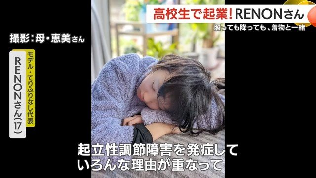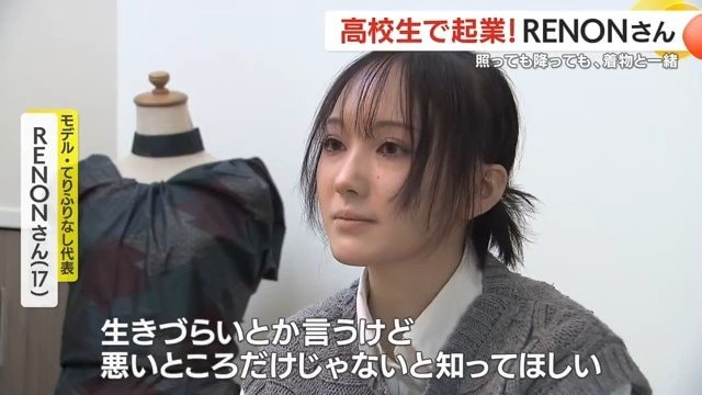 フリルにリボン、ブーツ。和服にそんな洋風のアクセントを組み合わせた、型破りなコーディネートが注目されている。手がけたのは鹿児島県在住のRENONさん(17)だ。着物モデルとして発信するだけでなく、2025年に16歳で着物レンタル会社「てりふりなし」を起業。会社設立事業を始めてからまもなく1年を迎える今、その活動と原点に迫った。