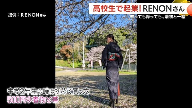 RENONさんの原点は、中学2年生のときに初めてフリーマーケットで手に入れた500円の着物と帯にさかのぼる。しかしその背景には、簡単には語れない日々があった。