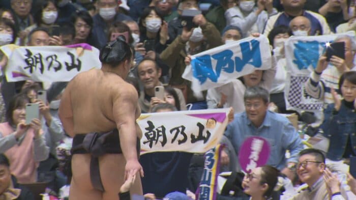 イベントだけでなく、肝心の取組でも朝乃山は存在感を見せた。人気力士・宇良と対戦し、豪快な上手投げで勝利。スタンドからは大きな歓声が上がった。